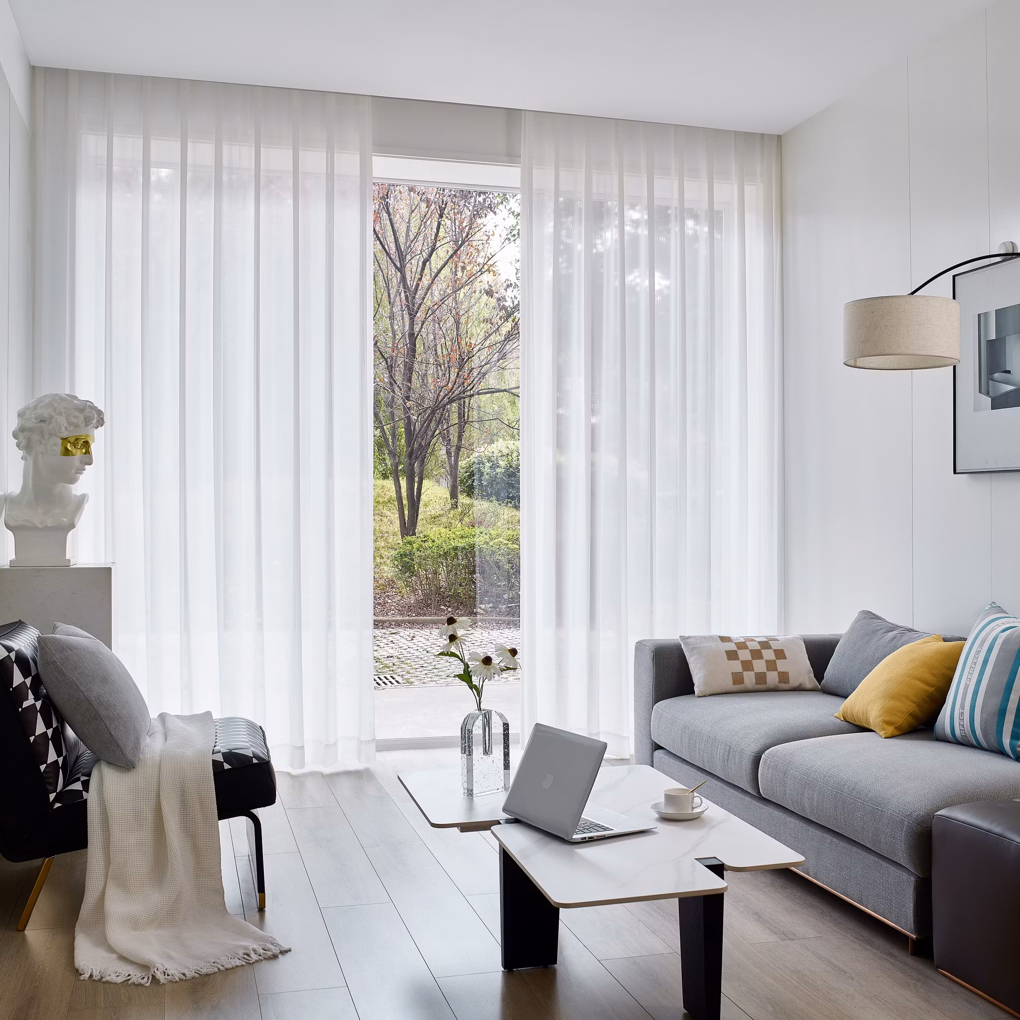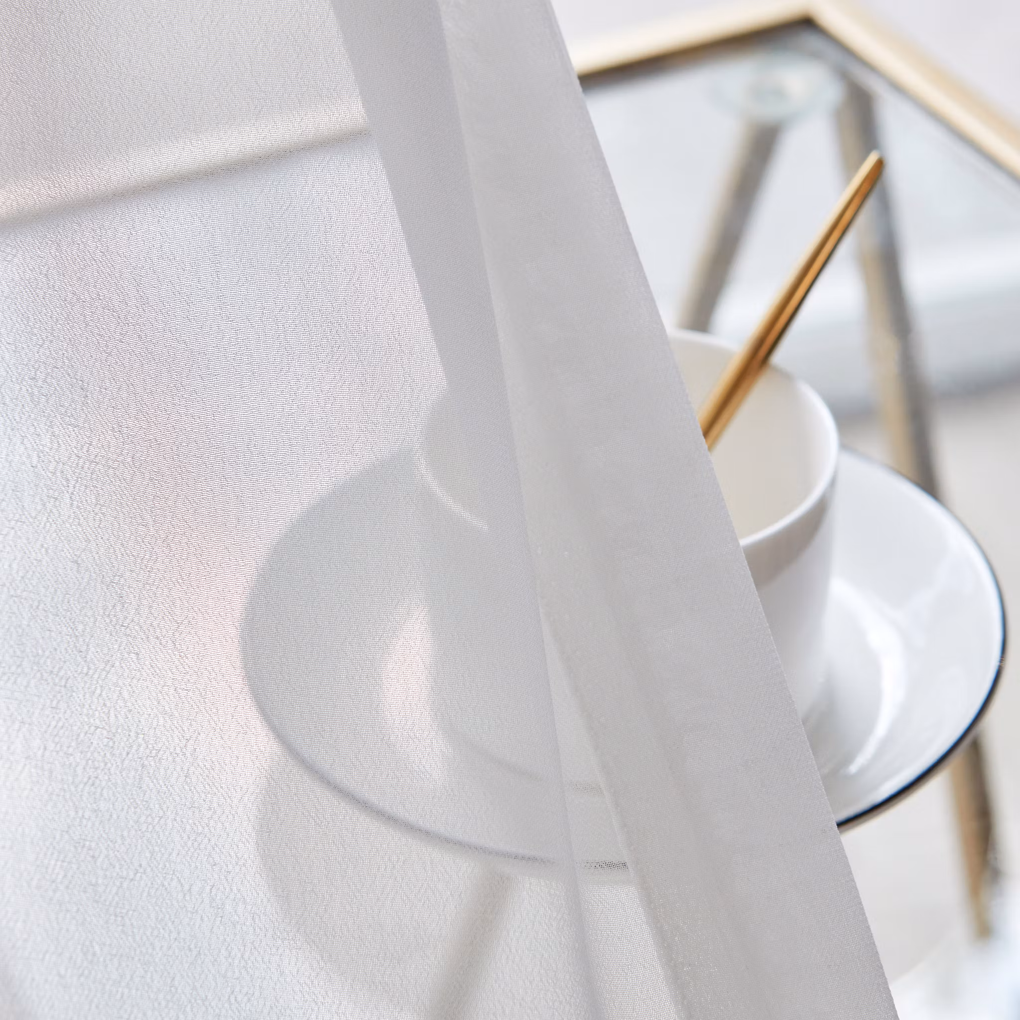 Vårt mest lättviktiga tyg släpper in generöst med dagsljus och skapar ett mjukt, harmoniskt ljusspel i rummet. Ett tidlöst och mångsidigt val som passar lika bra i sovrum och vardagsrum som i hotellmiljöer, kontor eller restauranger.