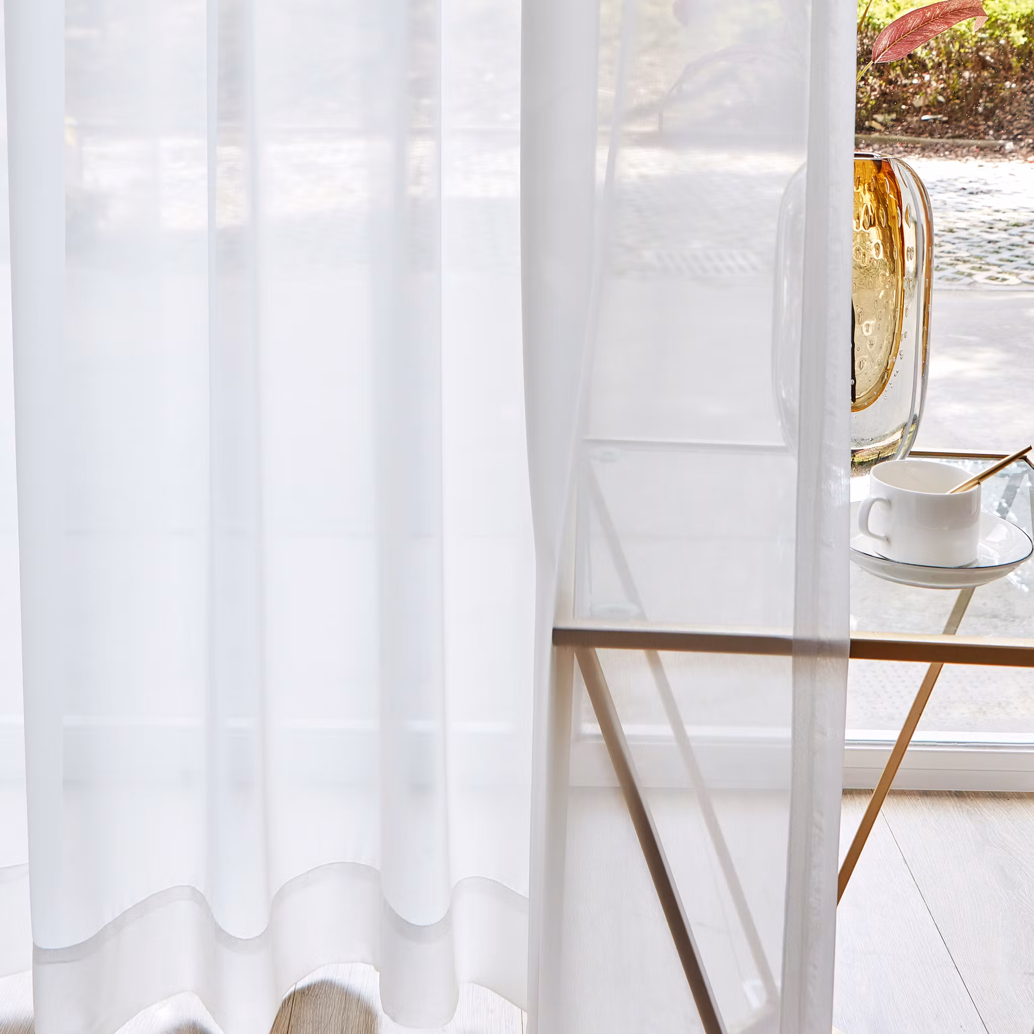En tunn och luftig gardin som vi skräddarsyr enligt dina mått i vår ateljé i Göteborg, Sverige.