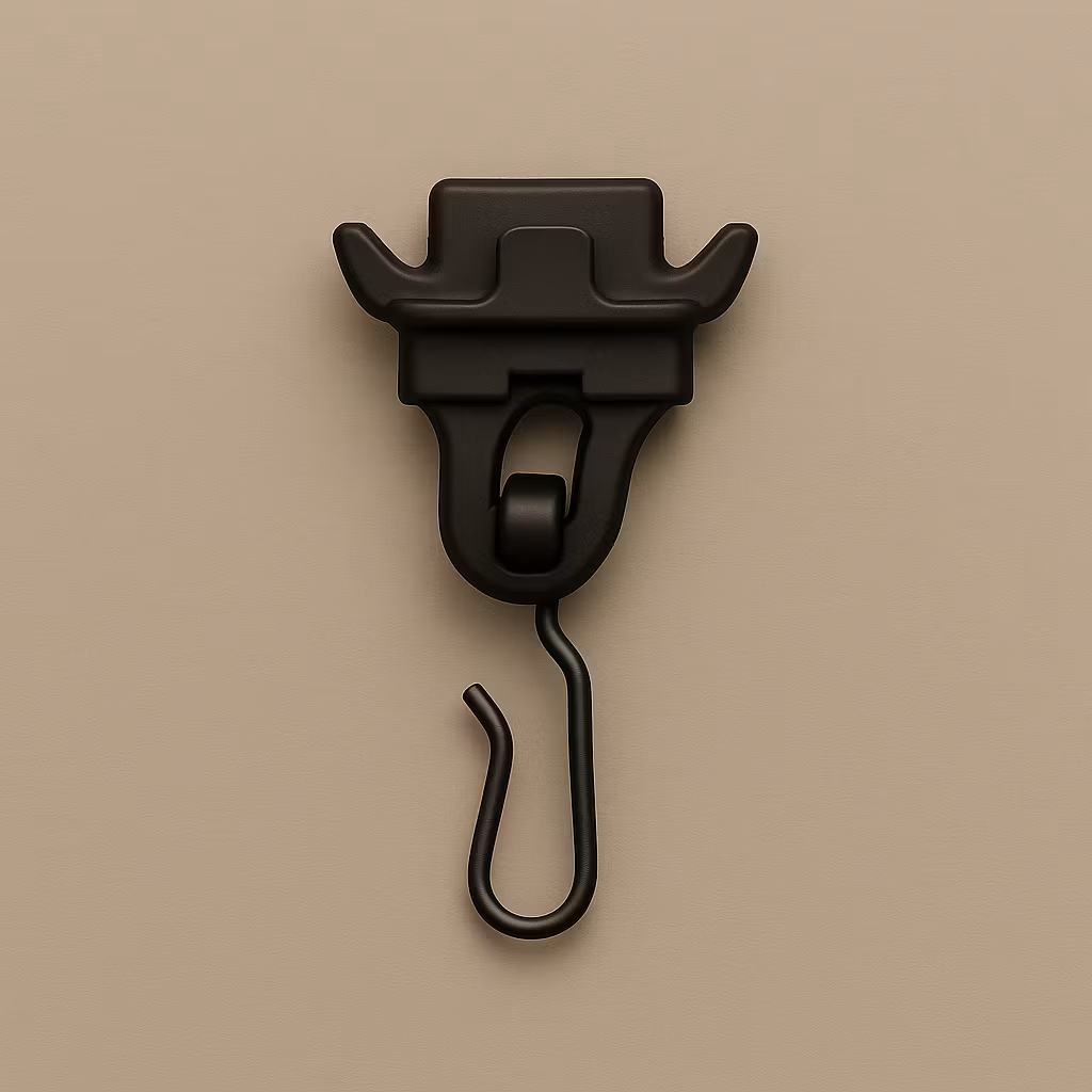 Tillverkad i robust plast och finns i vit eller svart för att smälta in diskret med din gardinskena och komplettera den övergripande designen.