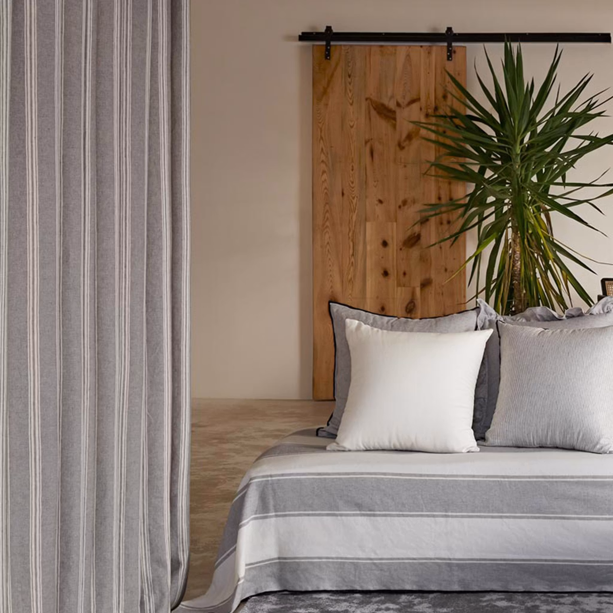 Negret är ett vackert vävt tyg med rytmiska ränder i tunna och tjocka partier, grupperade i fyrtal och kombinerade i två nyanser. Det påminner om rustika, traditionella textilier – men med en raffinerad och lätt känsla. Namnet kommer från Cap Negret-stranden, där klappersten möter klart vatten – en inspiration som återspeglas i tygets naturliga elegans.