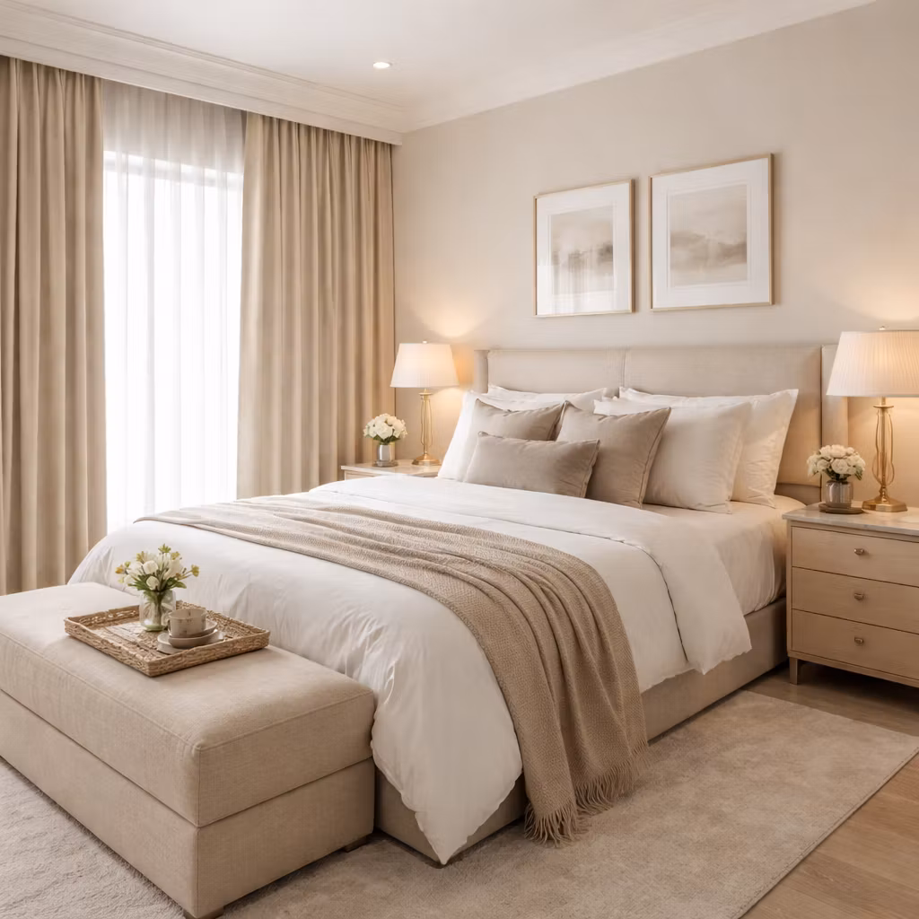 Linnets mjuka struktur och stilrena uttryck gör sig extra fint i kombination med en tunn gardin bakom för att förstärka den lyxiga hotellkänslan i ditt hem.