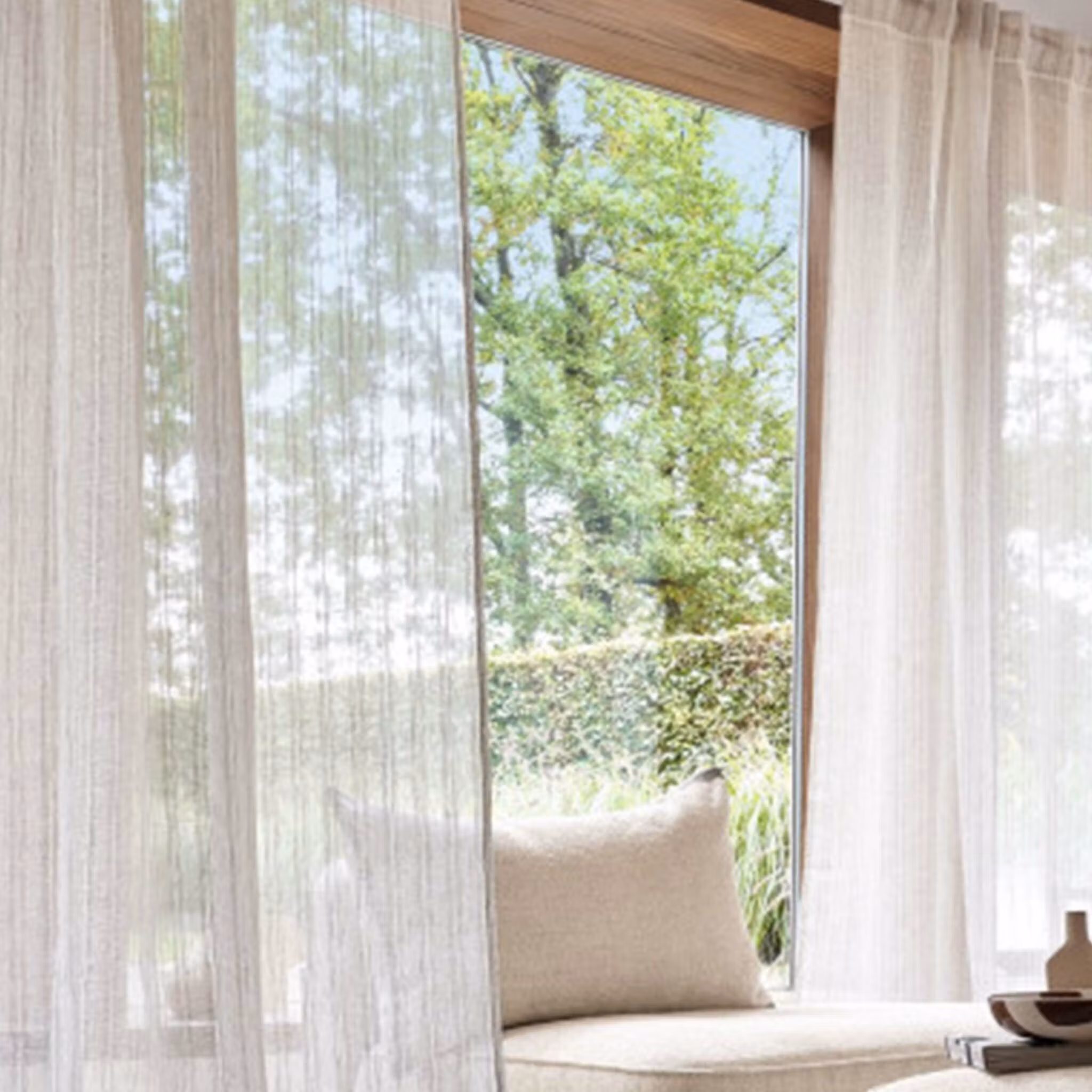 Beställ ett tygprov för att se den vackra strukturen och nyansen i din egen miljö innan du bestämmer dig.
